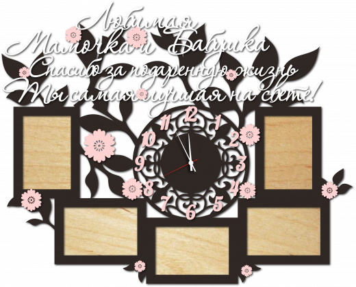 - Высокое качество: Для изготовления часов мы используем только лучшие материалы, включая покрытия древесины под ценные породы дерева, акриловое стекло. Каждый элемент проходит тщательную проверку, чтобы гарантировать долгий срок службы изделия.