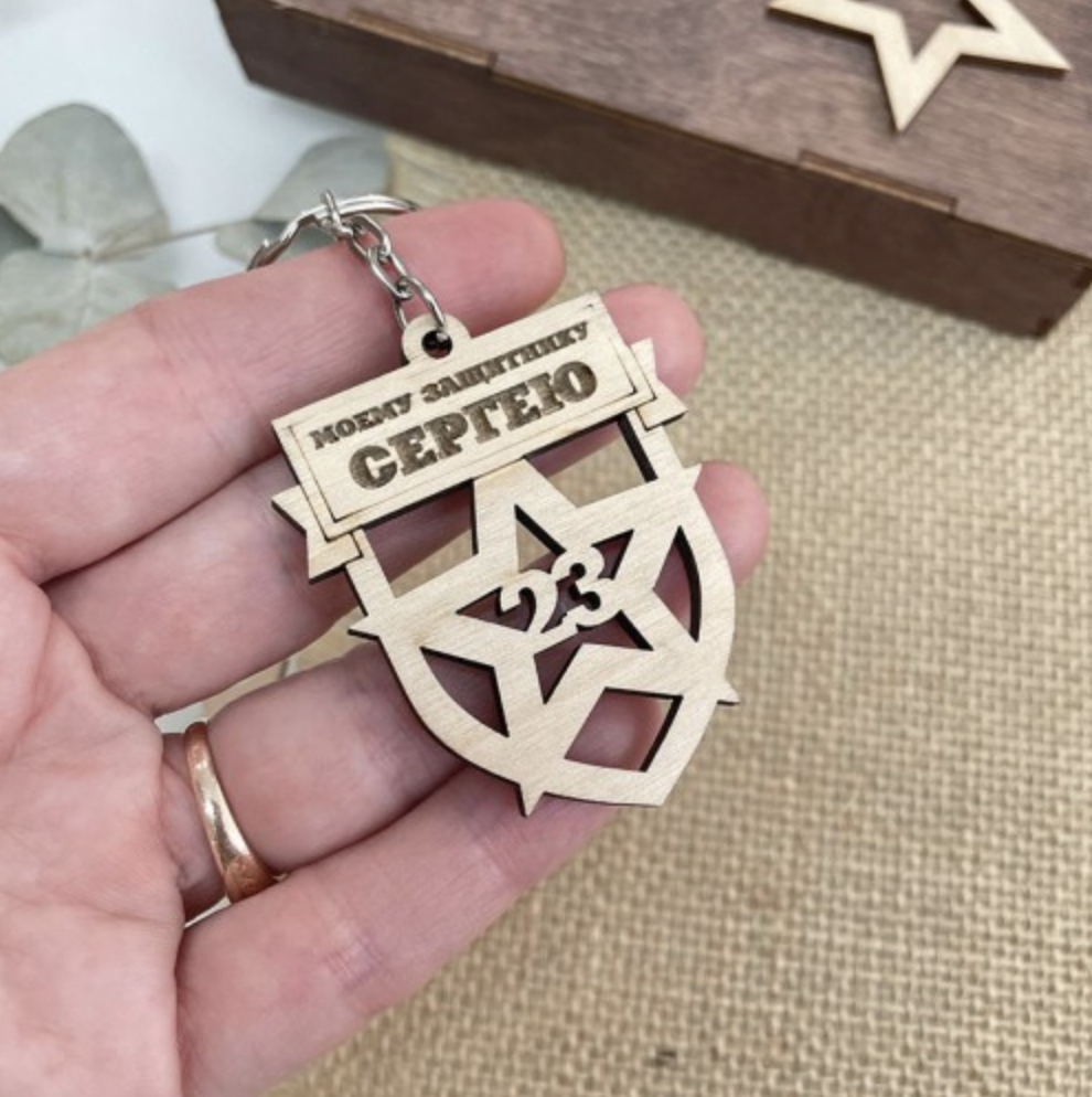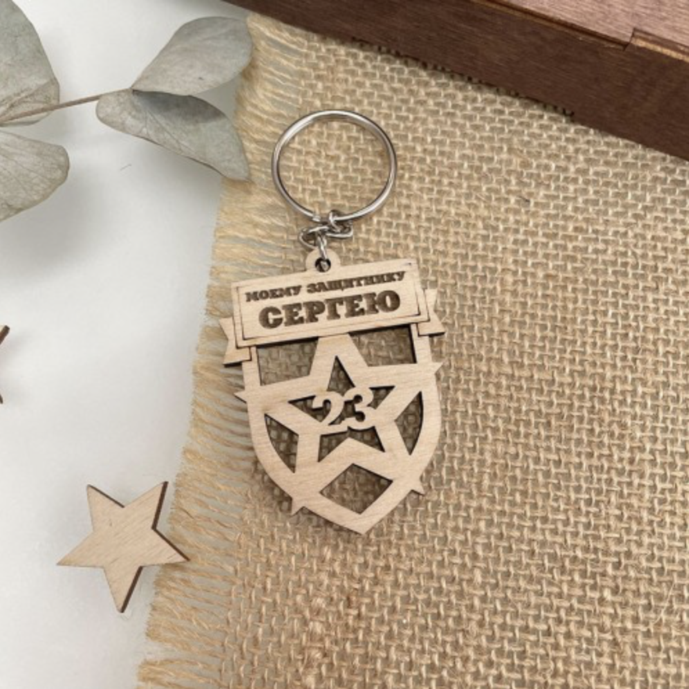 Брелок из дерева на 23 февраля — оригинальный и практичный подарок для мужчин в День защитника Отечества. Стильный аксессуар, выполненный из натурального дерева, станет напоминанием о вашей заботе и внимании. Мы можем нанести гравировку: имя, поздравительную надпись, символику армии или памятную дату. Такой сувенир подойдёт коллегам, друзьям, папе, дедушке или любимому человеку. Небольшой, но значимый подарок, который всегда будет рядом.