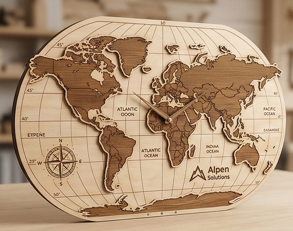 Часы настенные из фанеры с гравировкой на заказ - изготавливаем на заказ по вашему макету, нанесём логотип, надпись или изображение.