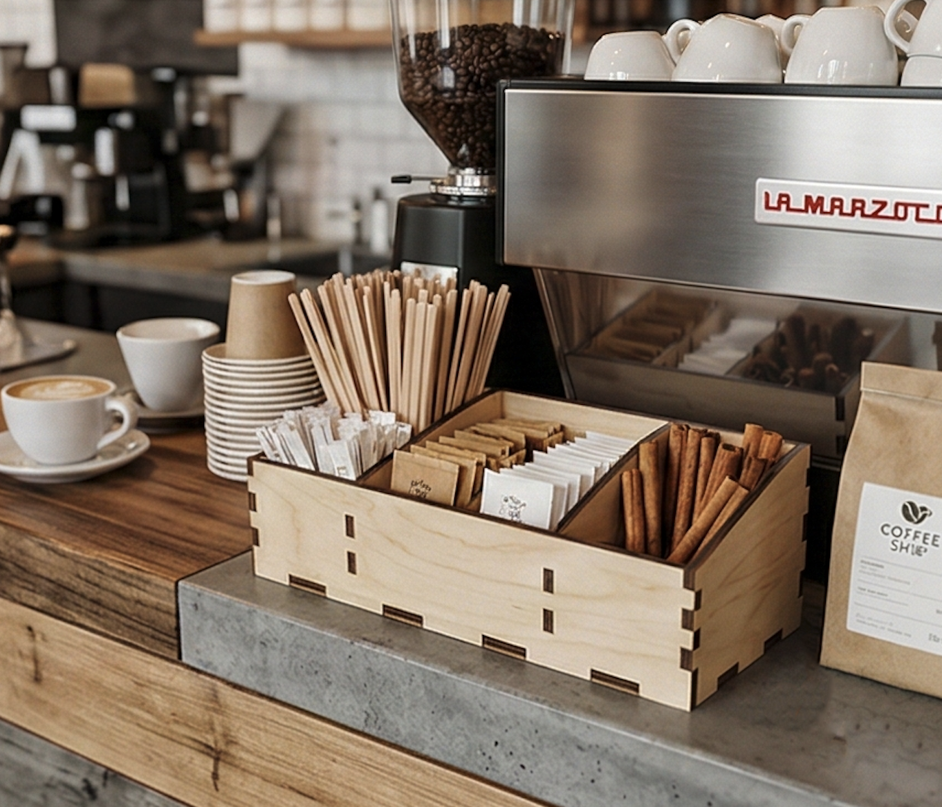 Держатель для мешалок и палочек (кофейня) Аксессуар для барной стойки/столов. Изготовим под ваш формат и стиль. Гравировка логотипа и покрытие — на заказ.