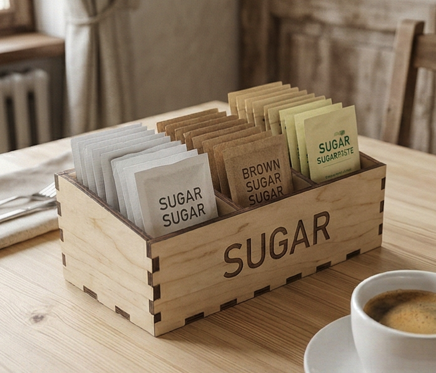 Держатель для сахара в пакетиках (настольный) Аксессуар для барной стойки/столов. Изготовим под ваш формат и стиль. Гравировка логотипа и покрытие — на заказ.
