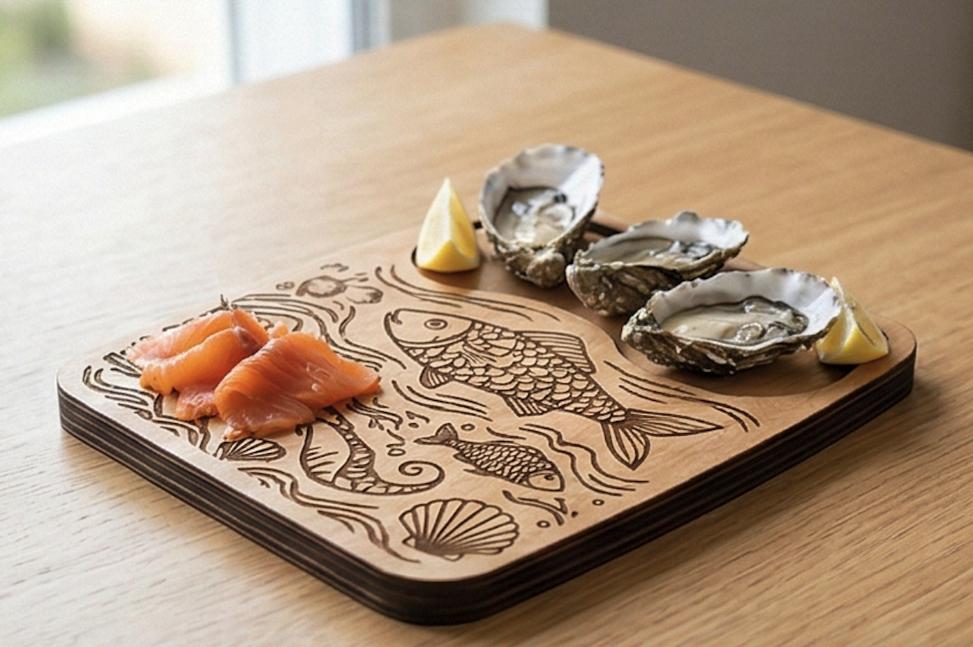 Доска для подачи «рыба/морепродукты» Изделие для сервировки и подачи в HoReCa. Размер, форма и покрытие — на заказ. Гравировка логотипа возможна.