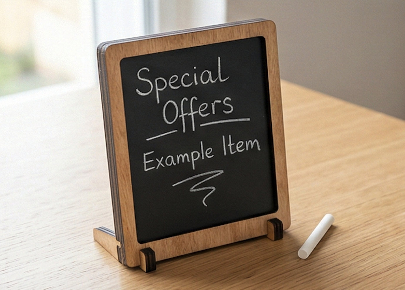 Доска‑меню для спецпредложений (меловая вставка) Изделие для сервировки и подачи в HoReCa. Размер, форма и покрытие — на заказ. Гравировка логотипа возможна.