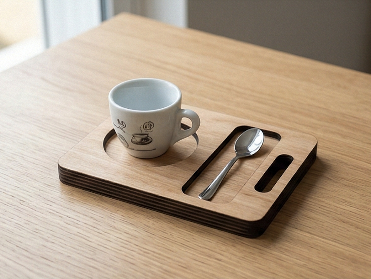 Поднос для подачи кофе (чашка+ложка) Изделие для сервировки и подачи в HoReCa. Размер, форма и покрытие — на заказ. Гравировка логотипа возможна.