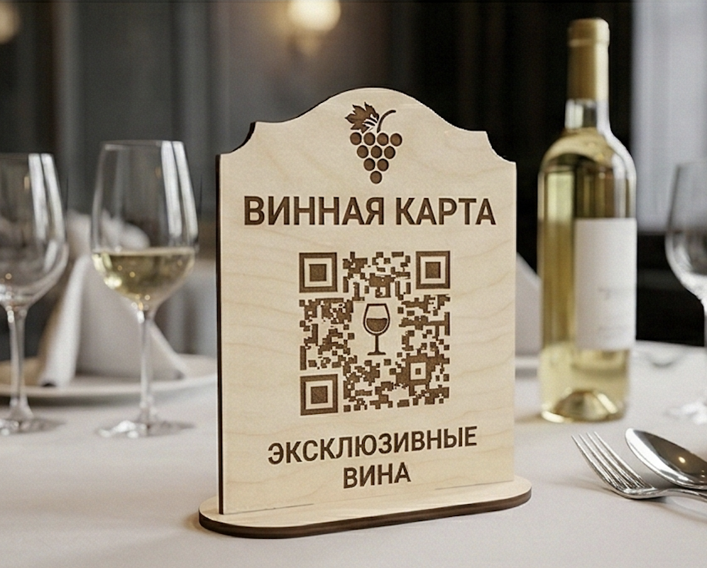 Табличка QR-винная карта QR-табличка на винную карту. Удобна для обновления ассортимента. Брендирование.