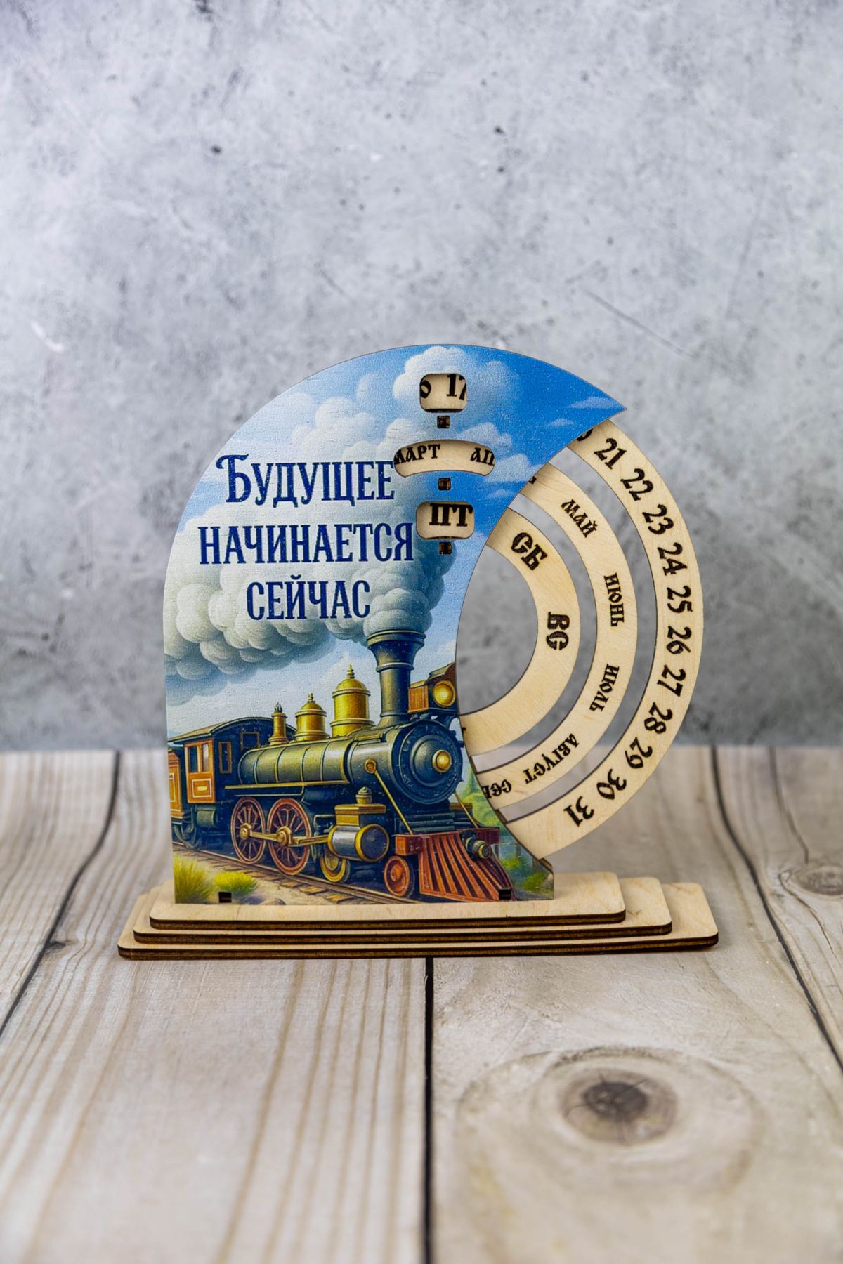 Вечный календарь из фанеры «Будущее начинается сейчас»