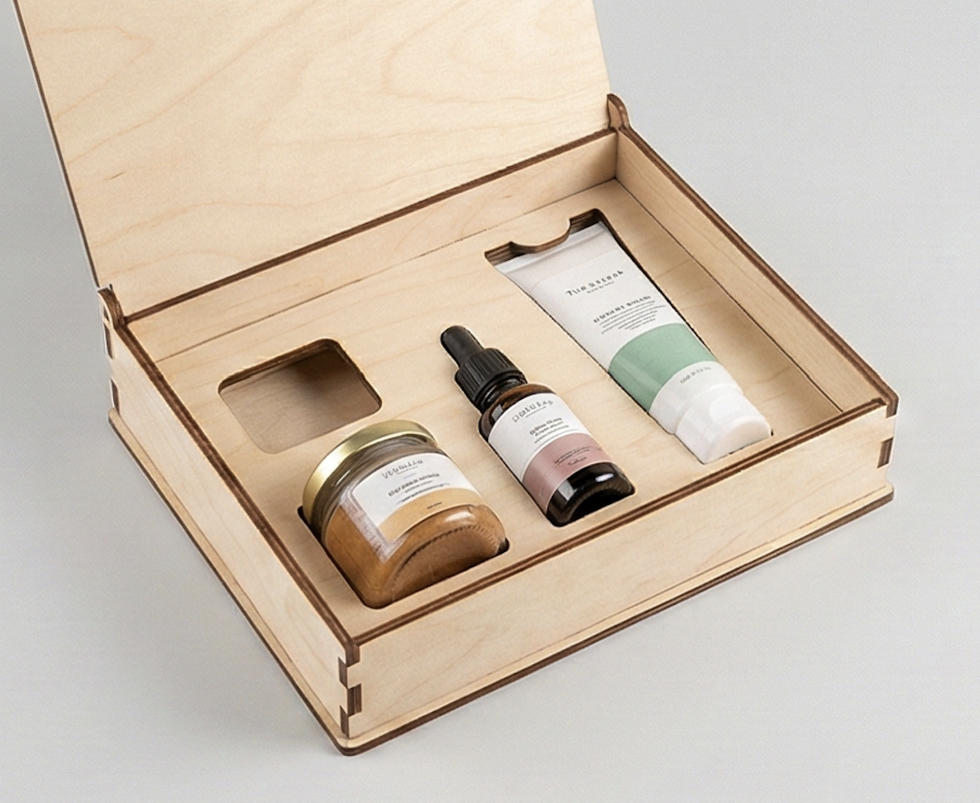 Коробка для косметического набора (крем+сыворотка+маска) на заказ по индивидуальным размерам и дизайну.