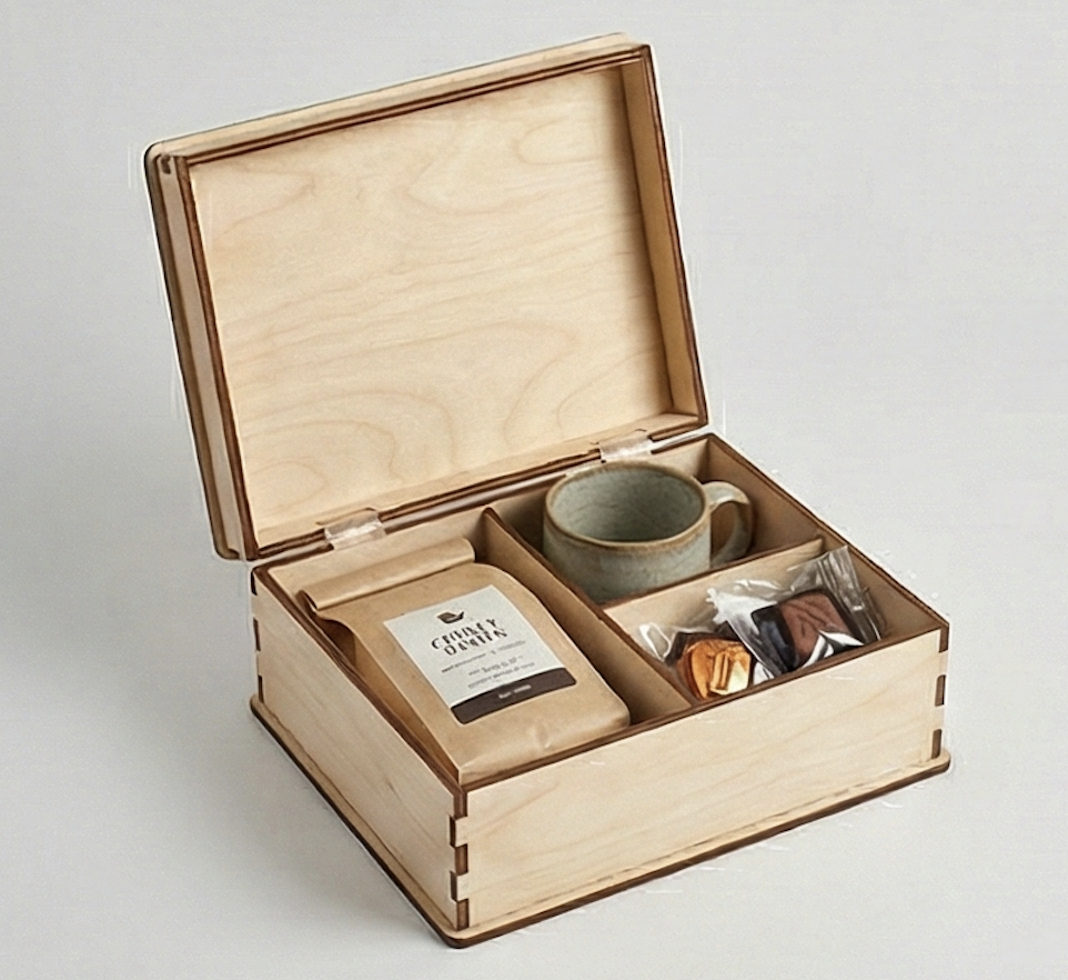 Коробка для набора «кофе + сладости» на заказ по индивидуальным размерам и дизайну.