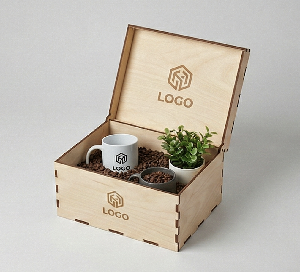 Коробка welcome pack с логотипом (M) на заказ по индивидуальным размерам и дизайну.