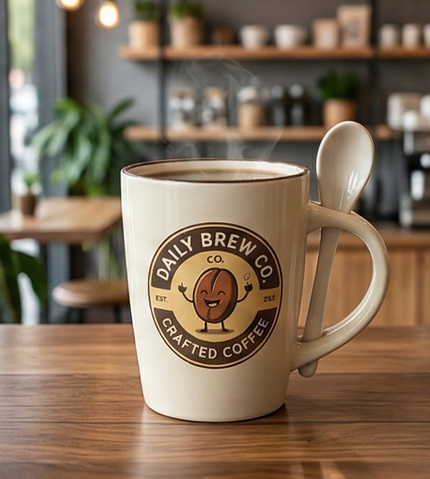 Кружка с ложкой (в ручке) с логотипом на заказ - изготавливаем на заказ по вашему макету, нанесём логотип, надпись или изображение.