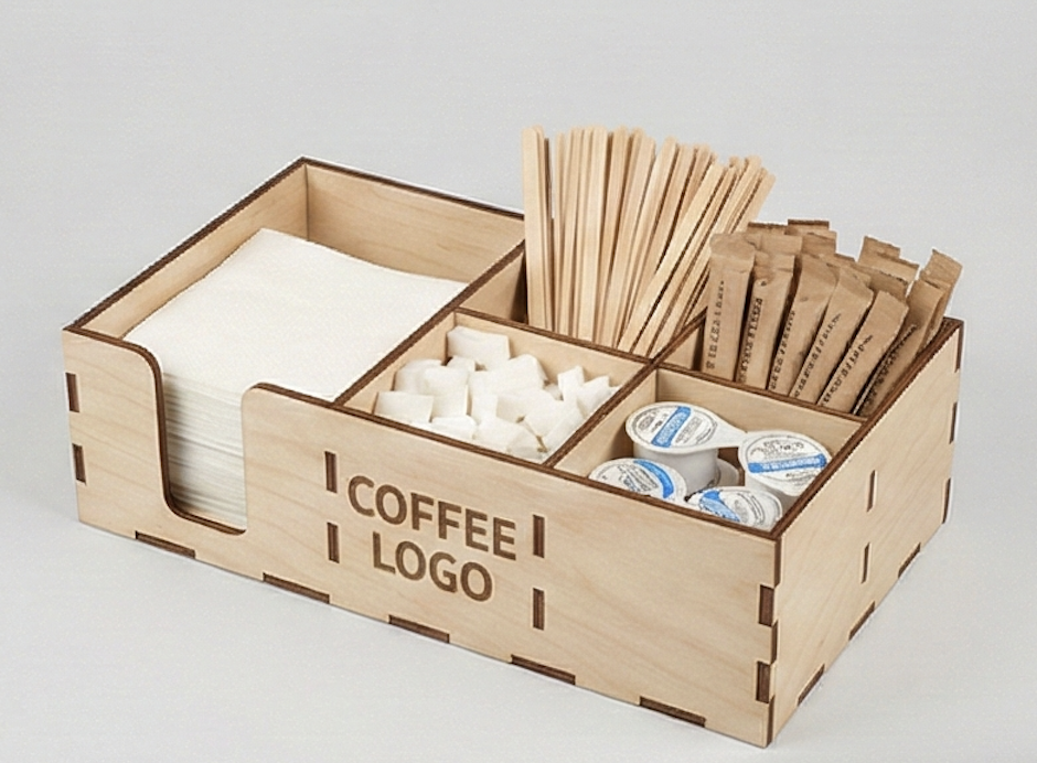 Органайзер для кофейни настольный с логотипом (6 секций) на заказ по индивидуальным размерам и дизайну.