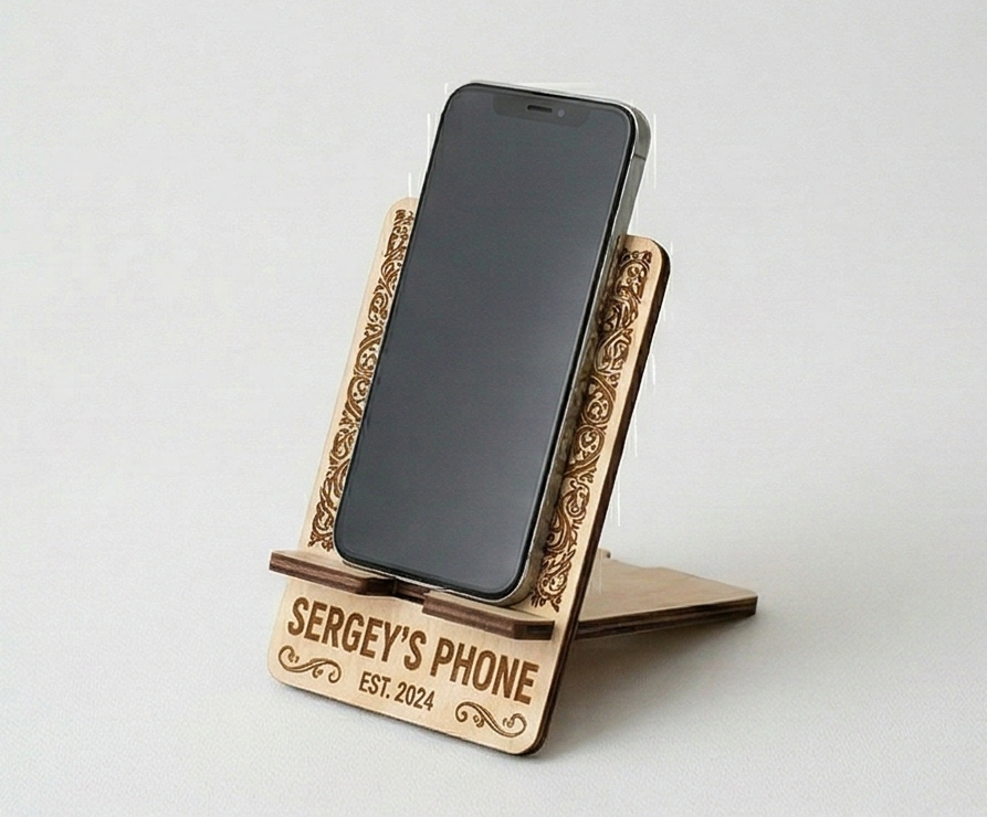 Подставка для телефона с именной гравировкой на заказ - изготавливаем на заказ по вашему макету, нанесём логотип, надпись или изображение.