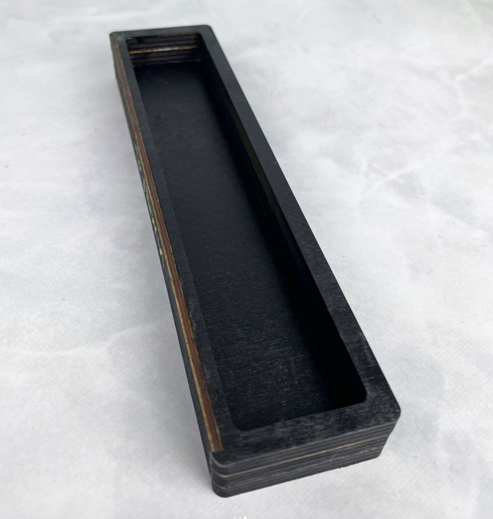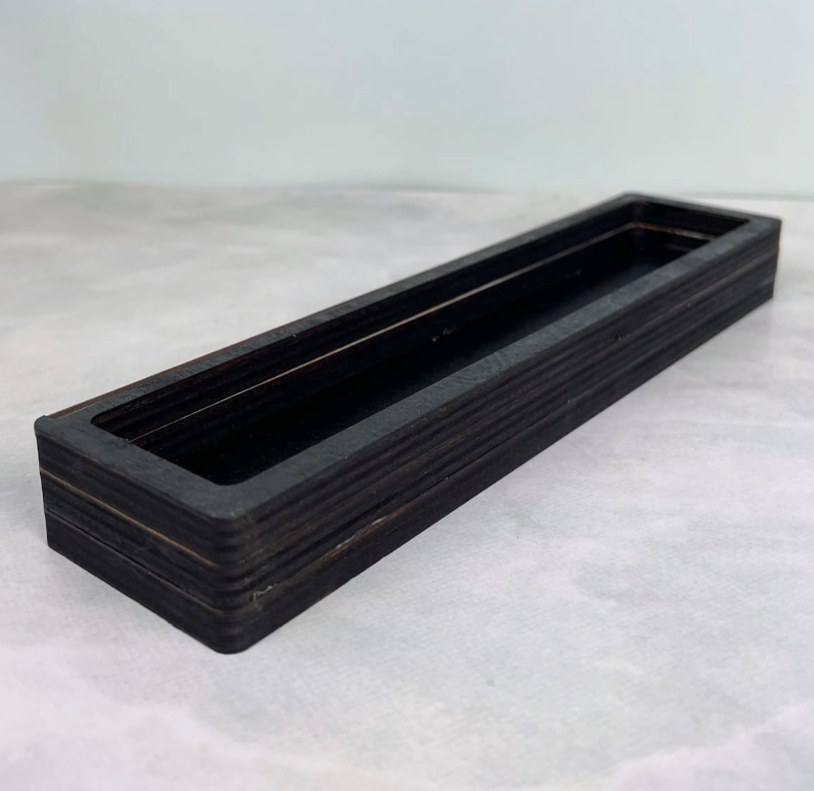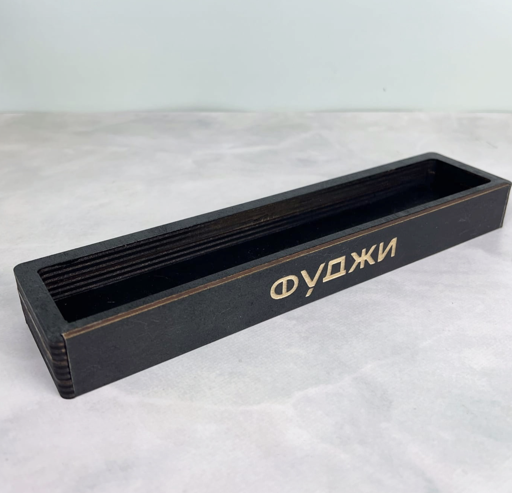 Произведём лоток под столовые приборы с логотипом сбоку на заказ из фанеры, пластика, кожи и других материалов толщиной до 10мм.