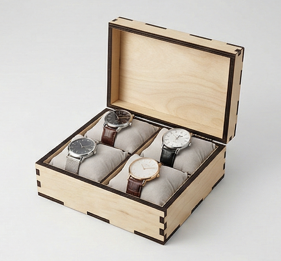 Шкатулка для часов на 4 слота на заказ по индивидуальным размерам и дизайну.