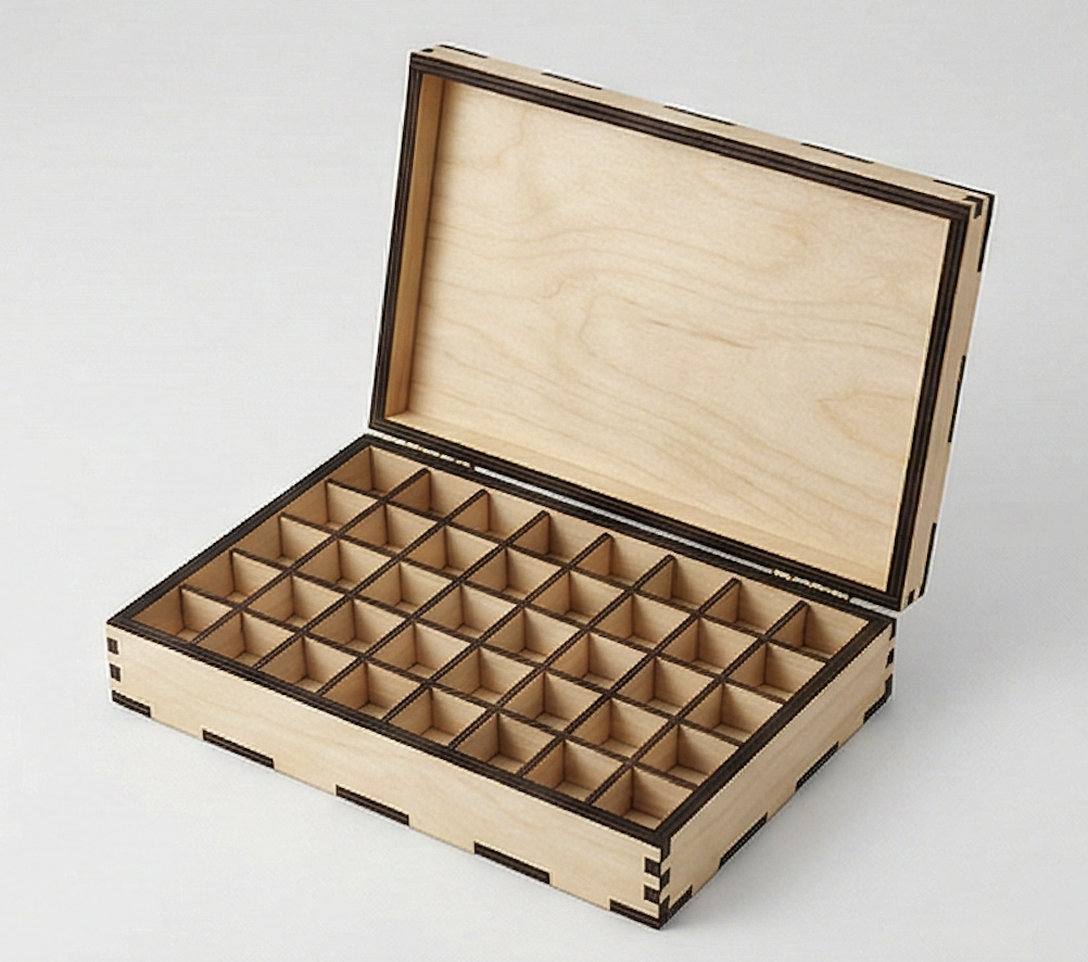 Шкатулка для монет (48 ячеек) с крышкой на заказ по индивидуальным размерам и дизайну.