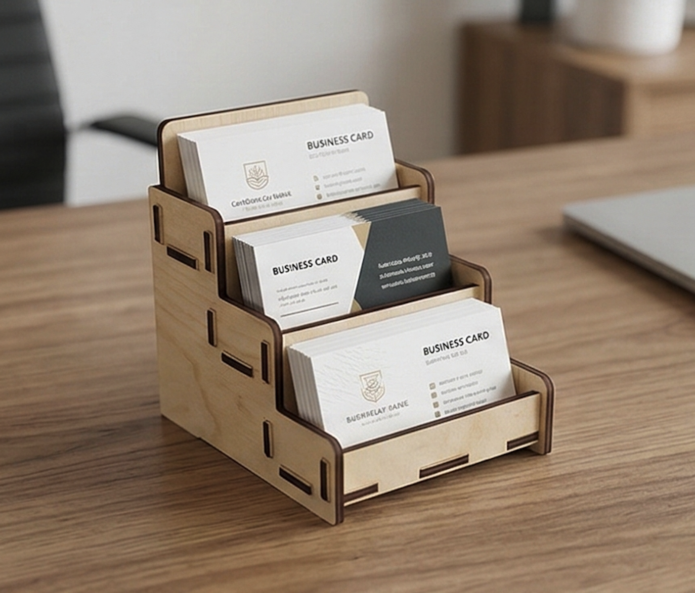 Настольный стенд для визиток из дерева на 3 секции.