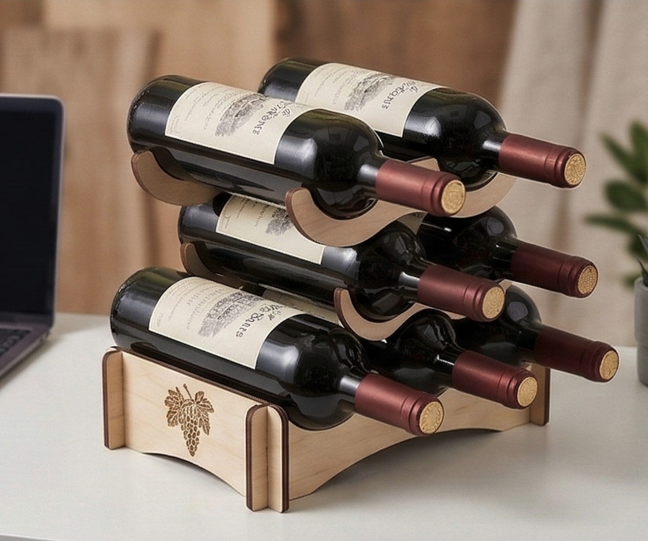 Деревянный стенд для винных бутылок на 6 мест для кухни, бара или витрины.