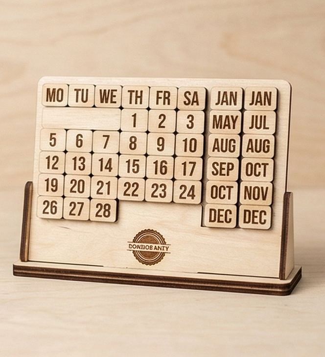 Вечный календарь из дерева (perpetual) с логотипом на заказ - изготавливаем на заказ по вашему макету, нанесём логотип, надпись или изображение.