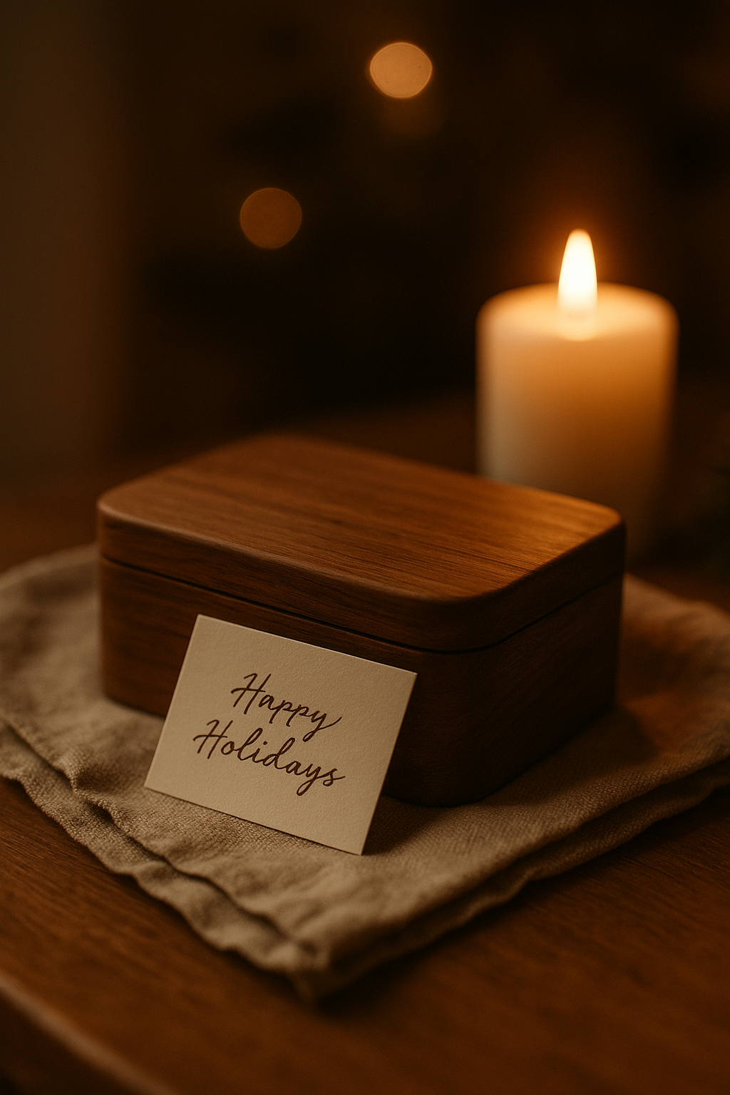 В 2025-м это шкатулки из дерева со значимой гравировкой.