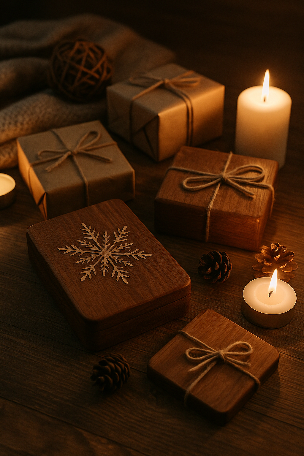 Под новогодний период спрос на брендированные наборы из дерева растёт в 2–3 раза.