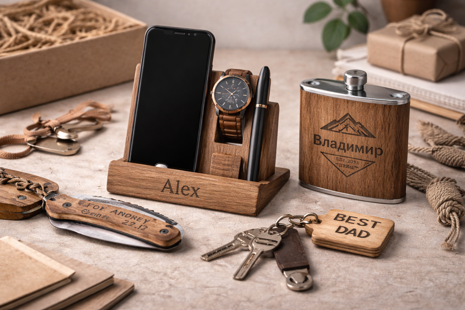 Если вы ищете креативный, но уместный подарок мужчине — для дома, работы или себя — деревянные аксессуары остаются одним из самых надёжных вариантов.